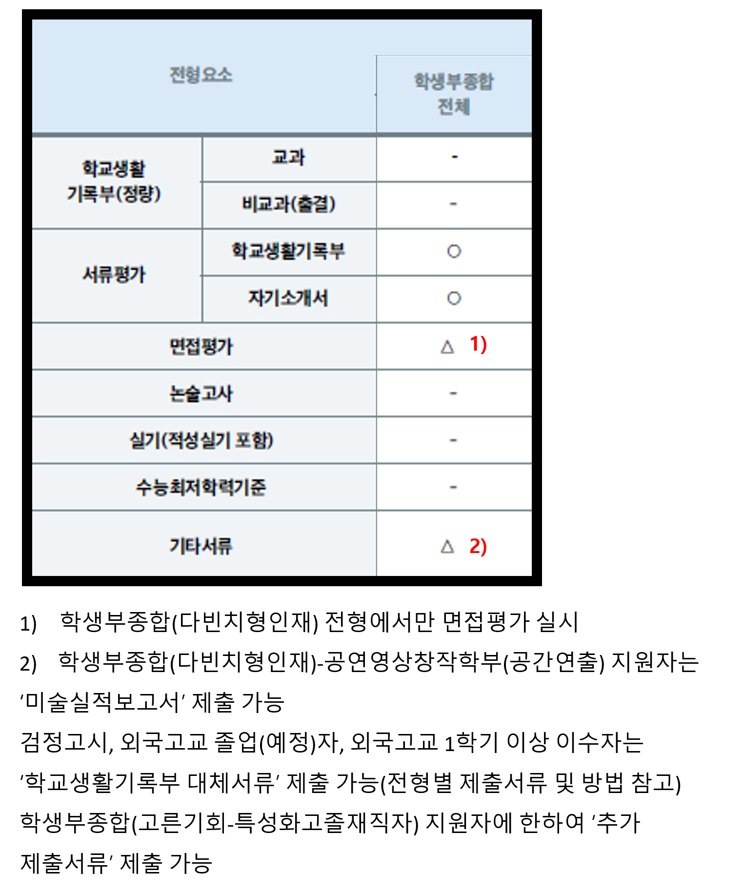 * 검정고시 및 외국고교 출신자의 경우, 학교생활기록부 대체 서식에 작성한 경험 중 기술